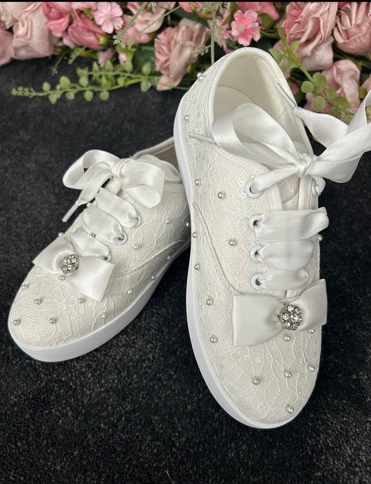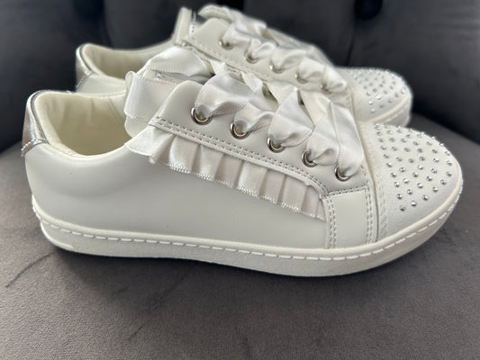 Paula’s Communion- White Glitter Communion Shoes - PS-01