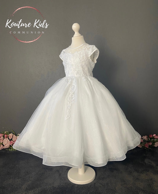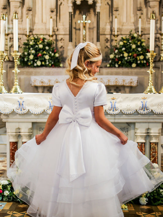 Crystal & Pearl - Ava Communion Dress 3 layered Tulle Skirt COM44