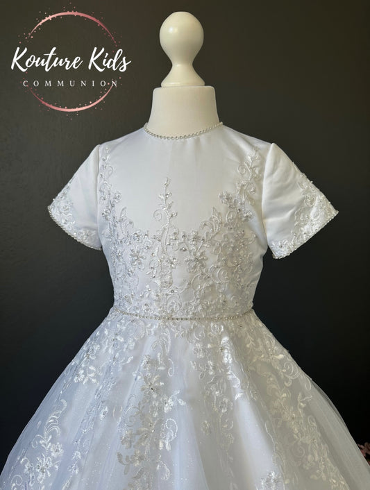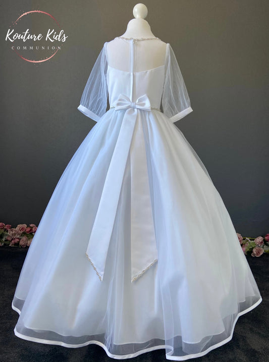 Crystal & Pearl - Ava Communion Dress 3 layered Tulle Skirt COM44