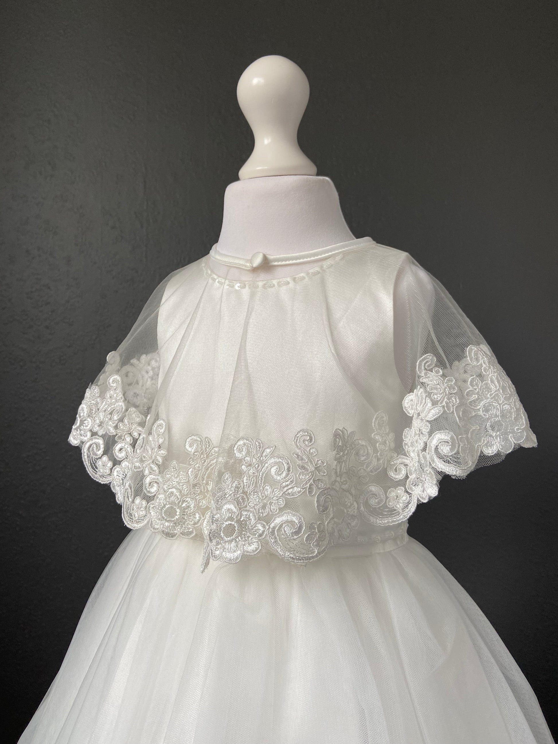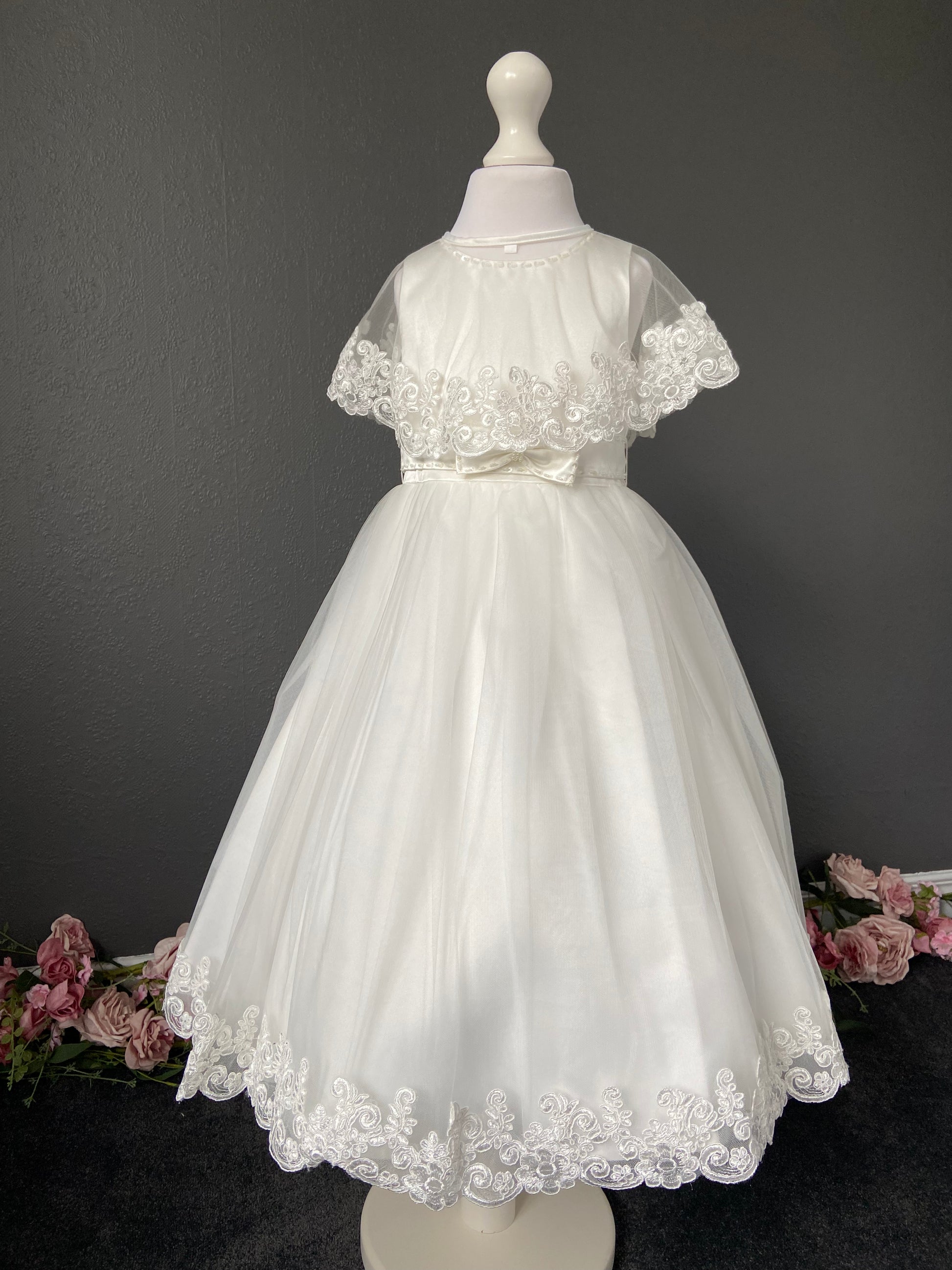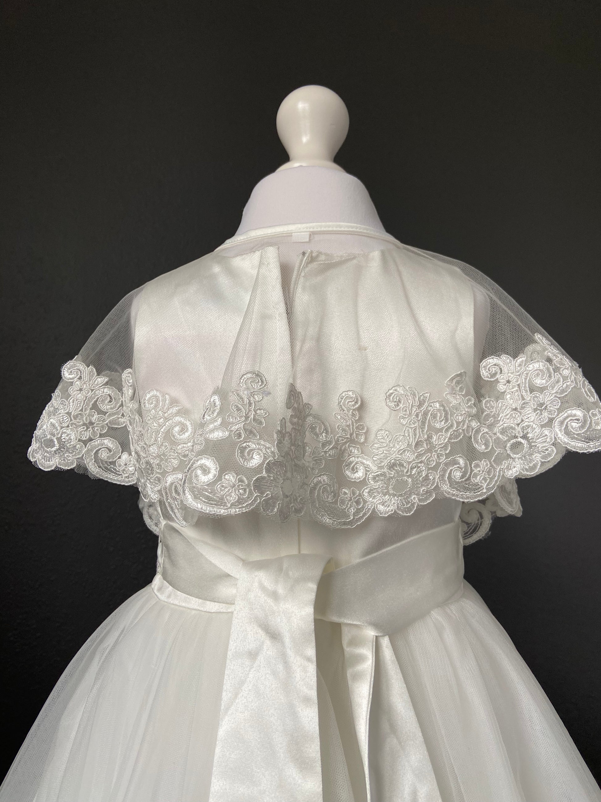 Beautiful ivory flower girl dress with detachable shoulder cape