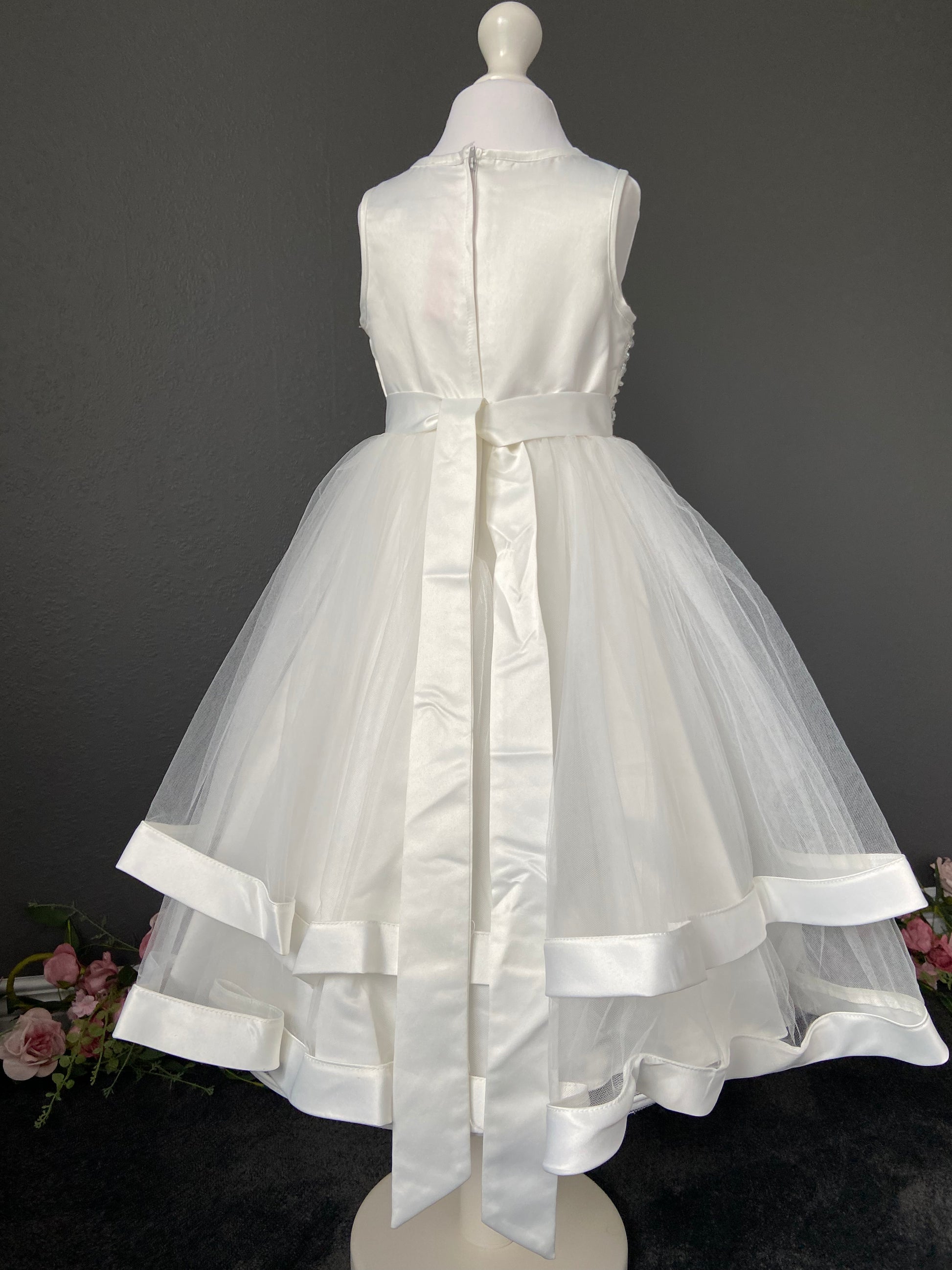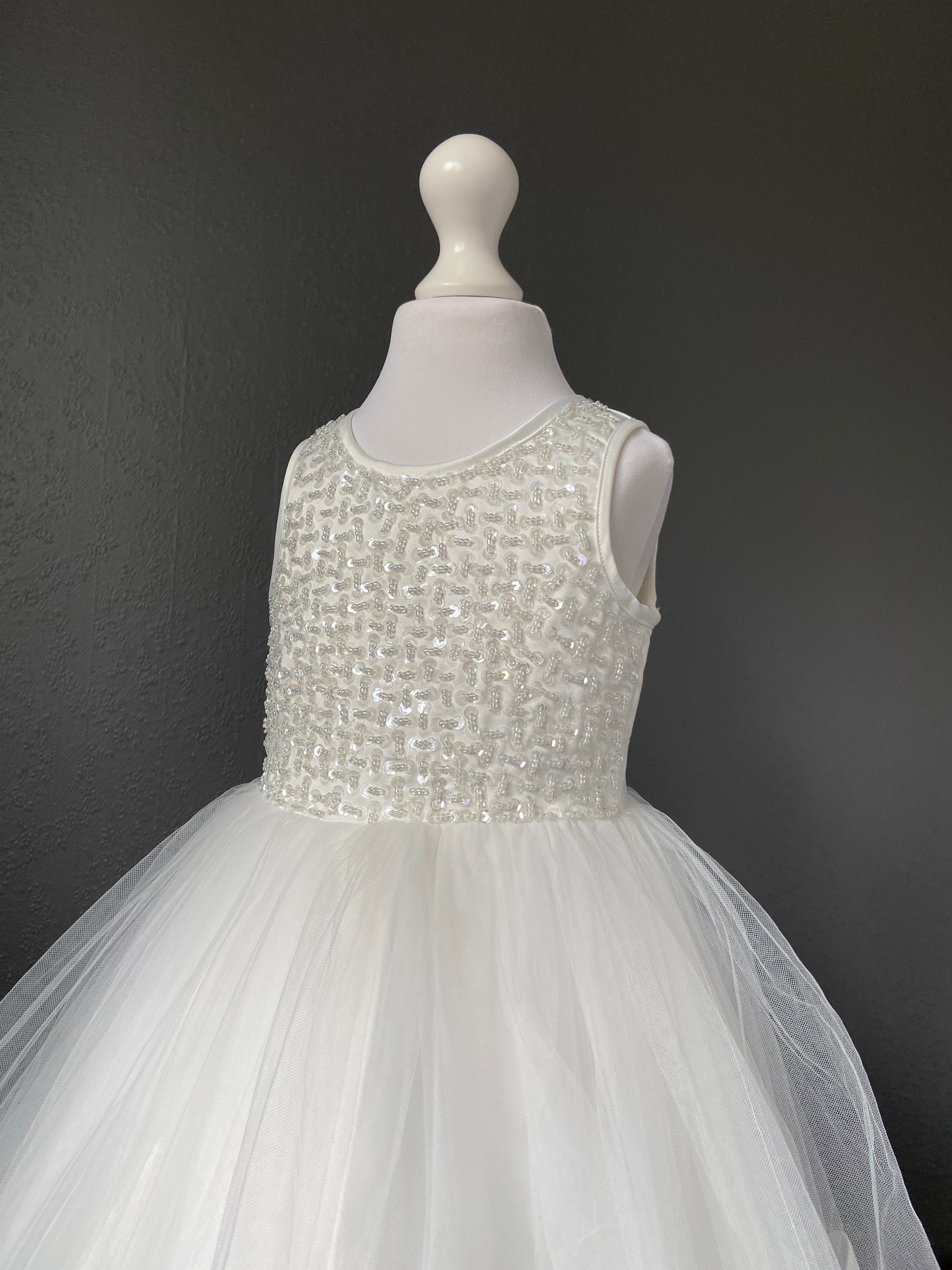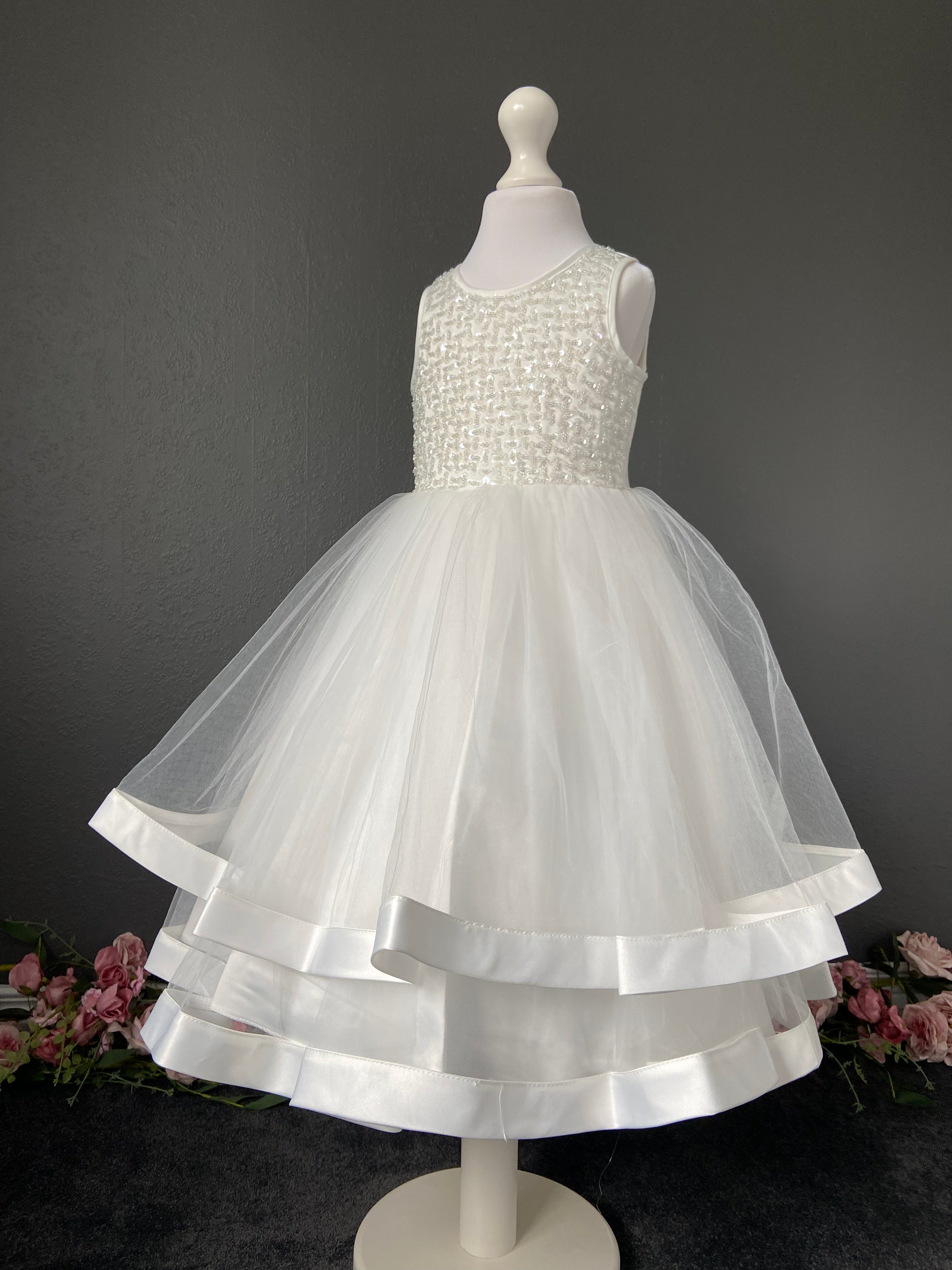 A beautiful two tier flowergirl dress with stunning beading and sequin bodice