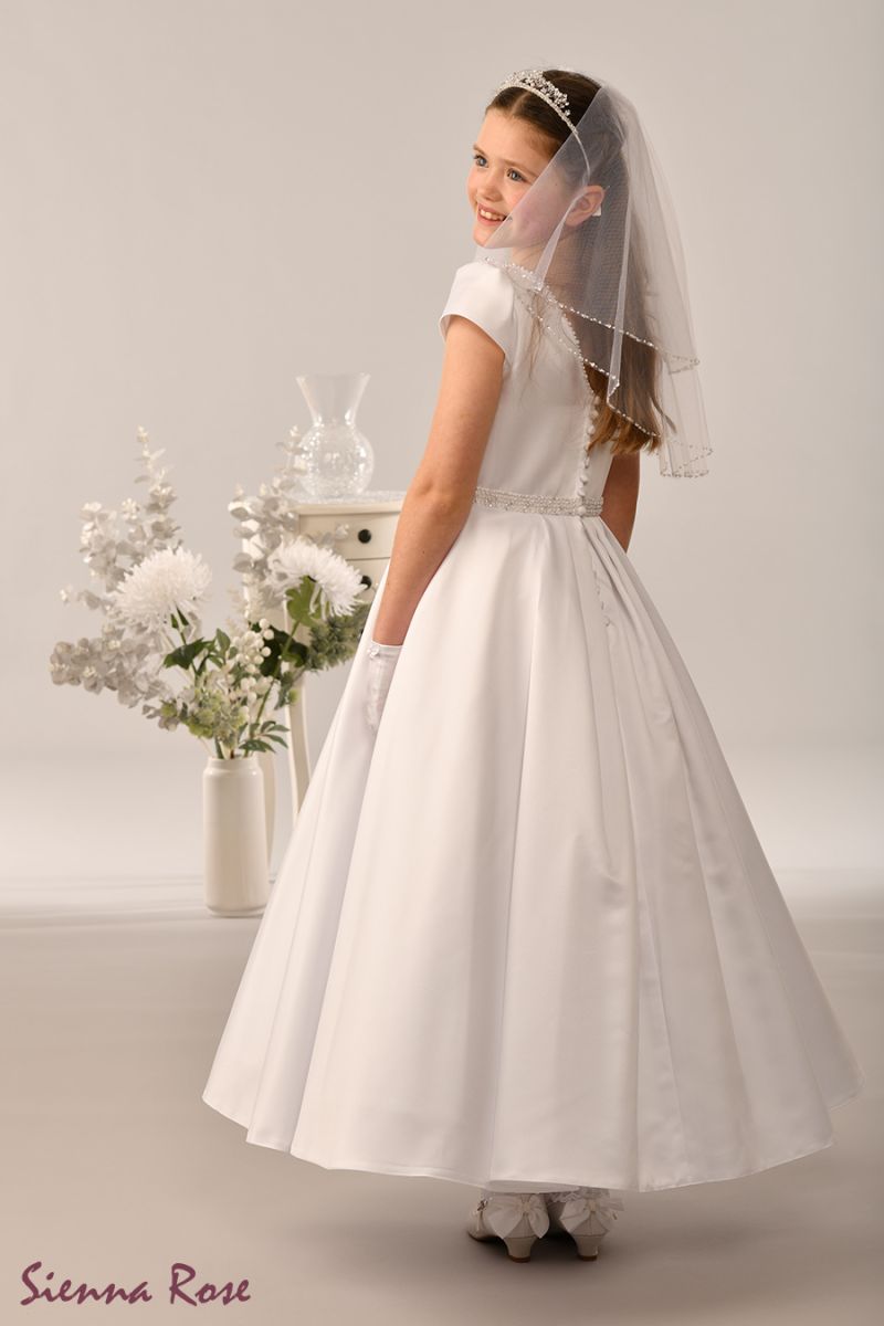 "Experience the elegance and charm of the Sienna Rose SR736. This stunning communion dress features a plain design with intricate beading on the waist, adding a touch of sophistication to any special occasion. Walk down the aisle in style and make a lasting impression with this beautiful white dress."