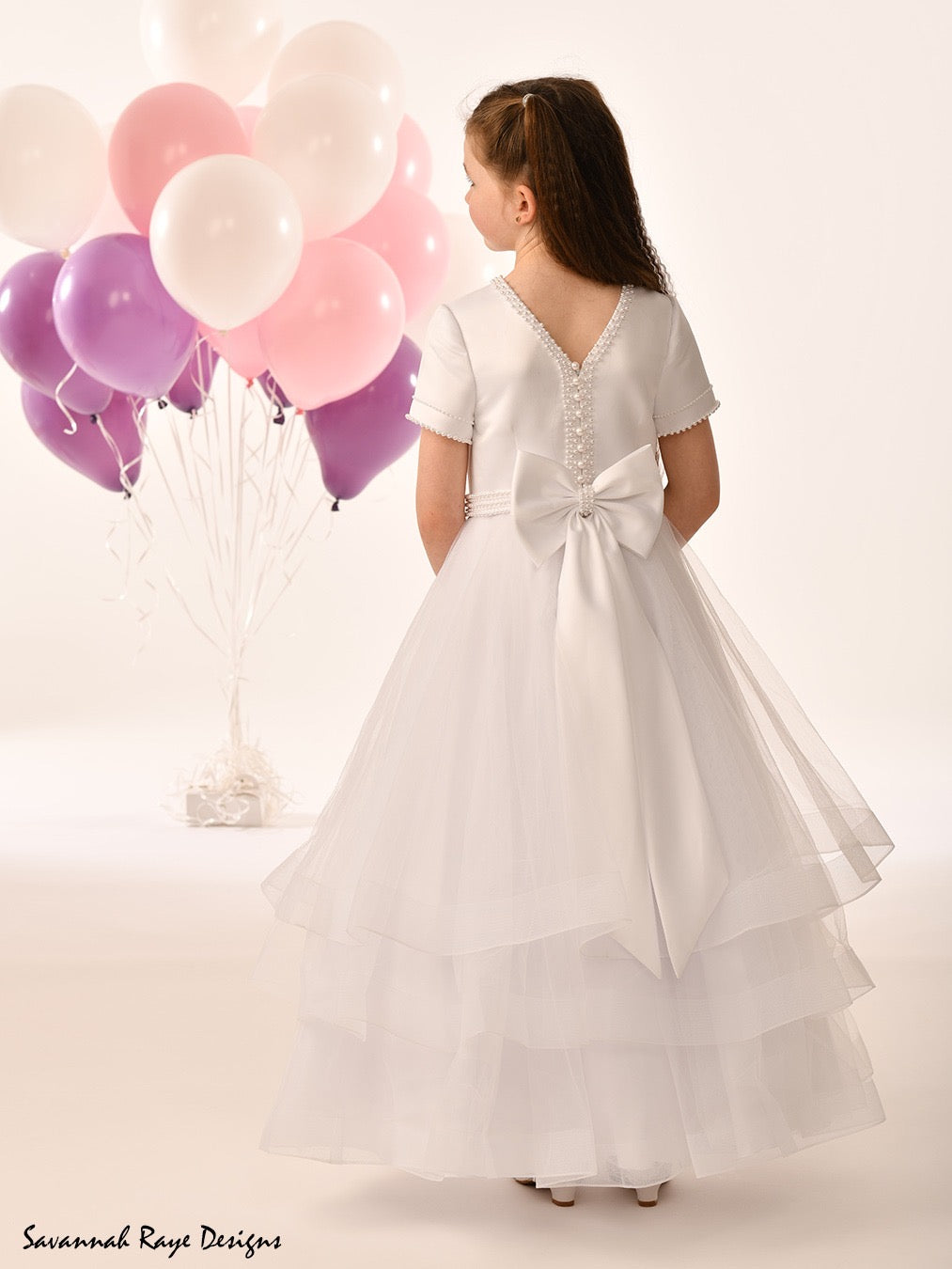Expertly crafted with a triple tiered tulle skirt, satin bodice, and a delicate bow at the back, the Savannah Ray - Bella dress is the epitome of elegance. Designed to make a statement, this dress is perfect for any occasion. Its intricate details and high-quality materials will make you stand out in a crowd.